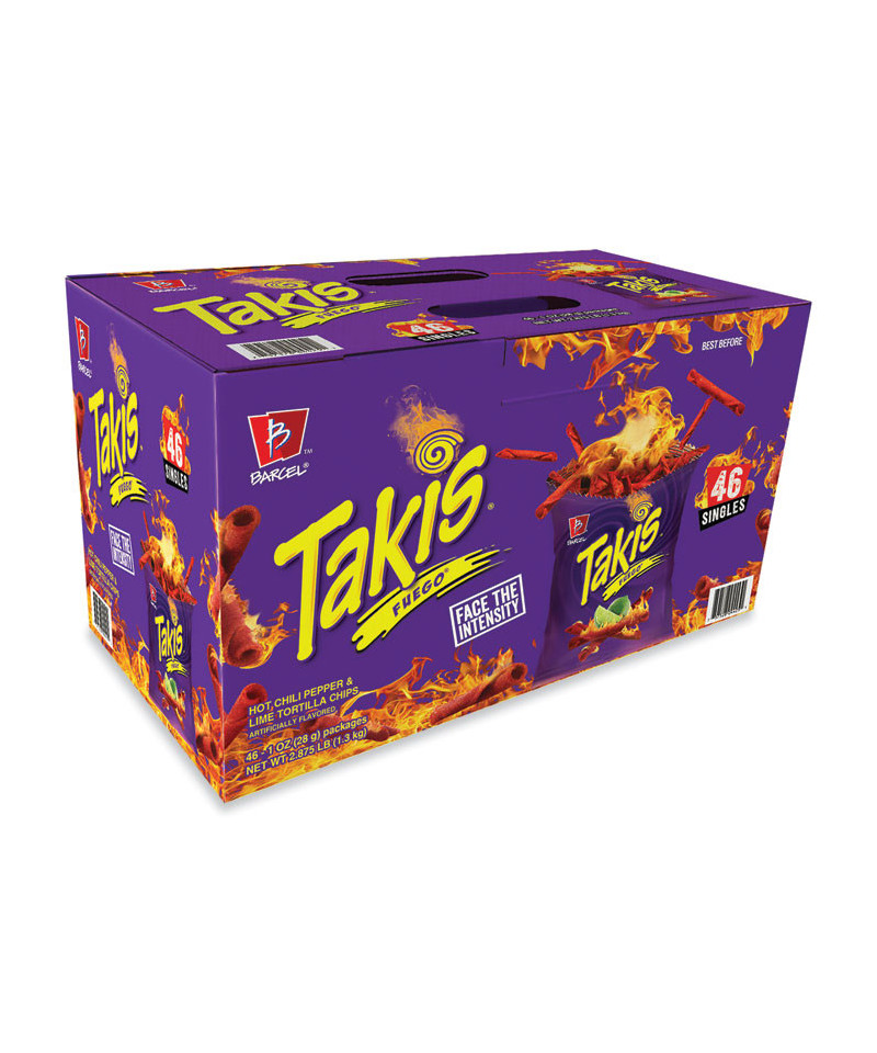 Takis are no ordinary corn chips. Oh, no. Takis Chips are only for the strong. The brave. The daring. Takis Fuego Chips are the taste of fire. A bite of lava. Containing an intense flavor combination of hot chili pepper and lime, Fuego rolled tortilla chips are rated Extreme. Are they meant for you? Face the Intensity.