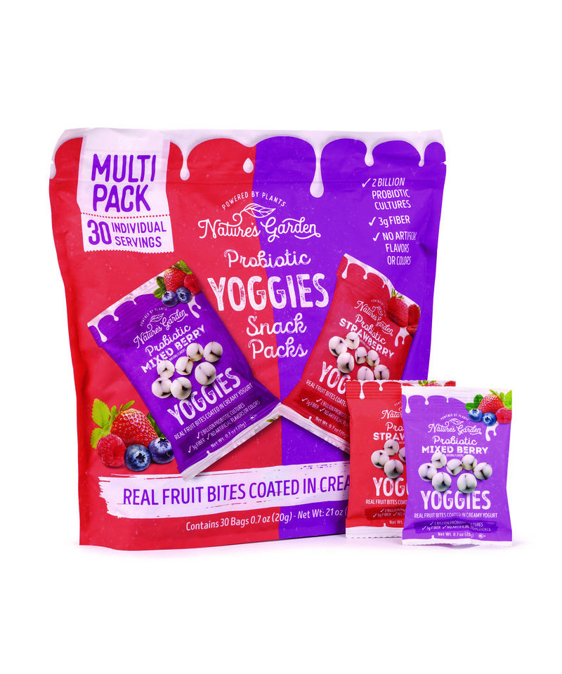 Real fruit and creamy, natural yogurt in a bite-sized snack, need we say more? Reap the wonders of billions of probiotics with Nature's Garden Probiotic Yoggies Snack Pack, a snack that's delicious and functional for the whole family. Chow down with this healthier-for-you treat that's creamy, chewy, and crazy delicious.