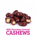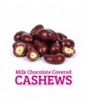 Milk Chocolate Covered Cashews are whole roasted cashews covered in creamy milk chocolate. Whether you eat them right out of the container or sprinkle them on ice cream or yogurt, they make the perfect sweet treat for cashew and chocolate lovers alike.