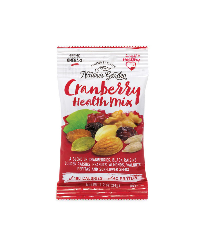 If you're looking for a healthy snack, look no further than this Nature's Garden Healthy Cranberry Health Mix pouch. Grab a handful of dried cranberries, dried raisins, walnuts, almonds, pepitas, peanuts and sunflower seeds and enjoy the great natural taste. Ideal for packed lunches or snacking on-the-go.
