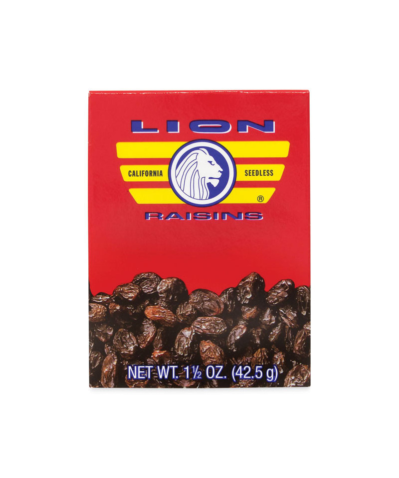 The Fast Fruit! Increase your daily intake of healthful fruits the quick and easy Lion Raisins way. Perfect to include in lunches, carry in backpacks, or anywhere on the go, Lion's raisins are the perfect way to give 1.5 oz servings of fruit to the family. These raisins are always ready to eat, won't spoil, don't require refrigeration, and are 100% natural.
