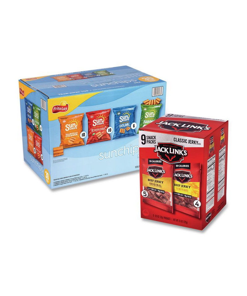 Bite into the tough, delicious flavor of Jack Link's Beef Jerky in Original and Teriyaki flavors! Or grab a bag of Sunchips in Harvest Cheddar, Garden Salsa. Original and French Onion flavors!