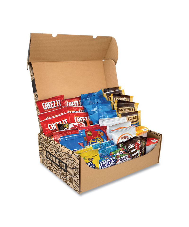 You can't start having a good time without this Party Snacks Box! Great for your next gathering, event or party, this crunchy snack assortment box is packed with all sorts of delicious, individually serving snacks! With Welch's Fruit Snacks, M&M Candies, Goldfish Crackers, Nabisco Cookies/Crackers, Keebler Cookie/Cracker, Sunshine Cheez-It, Chex Mix, Snyders Pretzels, Pringles Variety, Combos, Rice Krispies Treat, there's something for the snack and chocolate lovers at your party! This Party Snacks Box is great for hosting or bringing to a party, or even for your next employee party at the office! Products may vary by flavor per brand and substitutions may be made due to availability.