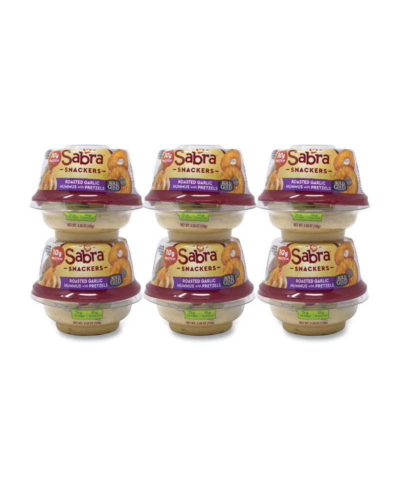 Sabra Snackers Classic Hummus with Pretzels is a satisfying blend of chickpeas (garbanzo beans), garlic and ground sesame seeds. Each pack is served with pretzel crisps for snacking on the go. These perfectly packaged on the go cups are perfect for snacking inbetween meetings or running from errand to errand.