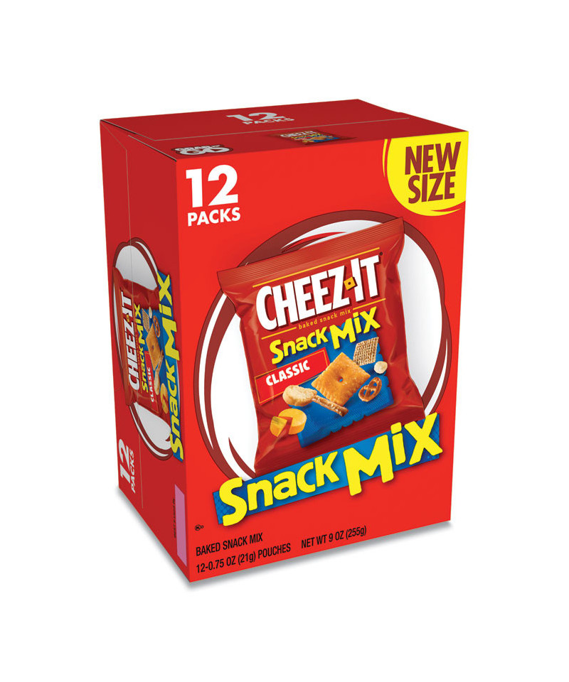 Satisfy your snack-time cravings with a delicious handful of Cheez-It® Snack Mix. Featuring a tasty combination of classic cheese crackers, tasty pretzels, mini toasted bread slices, savory wheat squares and cheese-flavored rice balls, this snack mix is poised to please. Try it as an after-school snack or party food on birthdays, game days or any time cheesy satisfaction is in order. Baked mix is made with 100% real cheese.