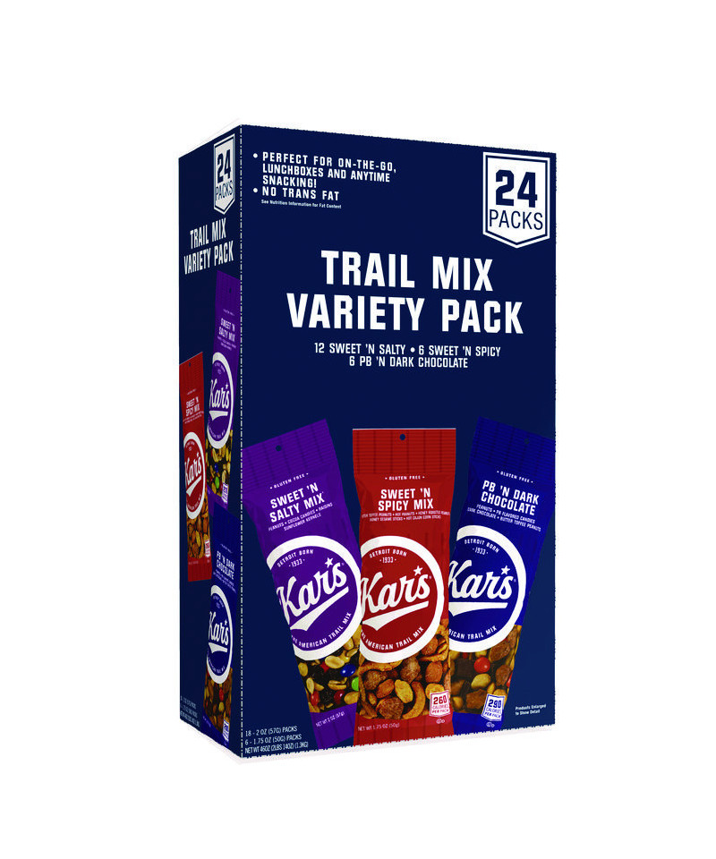 Add to cart Fruit and Nut Classic Trail Mix, 1.5 oz Bag, 18/Carton $70.62 With its perfect balance of crunchy and chewy textures, this sweet and salty trail mix pairs dry-roasted almonds, cashews, and pistachios with...