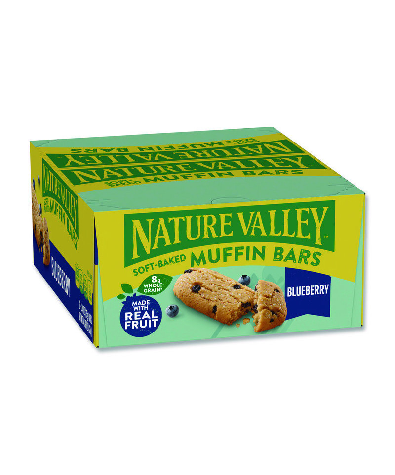 The Nature Valley Blueberry soft-baked muffin bar delivers the soft, moist texture of traditional muffins in a portion-controlled, convenient form. Baked with real fruit, juicy blueberries, and whole grains, this bar marries wholesome, real ingredients with bakery-fresh flavor to deliver tasty goodness that won't weigh you down. This Nature Valley muffin bar is individually packaged so that you can enjoy it anywhere, at any time. Pair one with a warm beverage for a relaxed breakfast at home, or take one with you for a subtly sweet, healthy treat on the go. Regardless of your routine, this bar will be a fit.