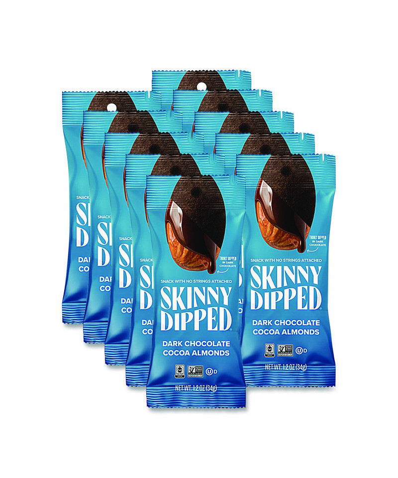 These whole almonds dipped in a thin layer of artisan dark chocolate and finished with a hint of cocoa are a great grab-and-go snack for a boost of energy during the day. They are also perfect for a post-workout snack naturally packed with protein and fiber. Unlike traditional chocolate almonds, these nuts have a super-thin layer of dark chocolate, so you get more almond in every bite and just enough chocolate to make your day a little sweeter. One serving has less sugar than an apple and as much protein as an egg. Nothing but real, clean, delicious goodness.
