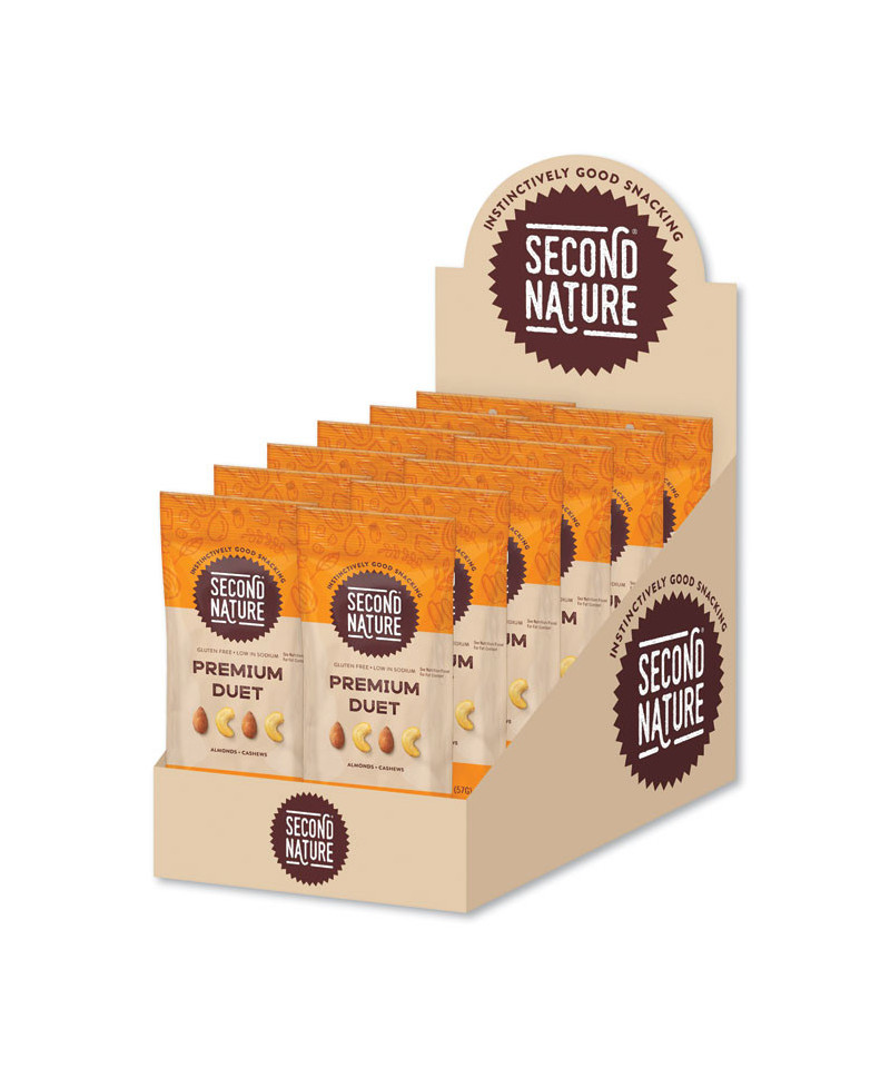 Premium Duet nut mix is a select blend of whole almonds and cashews, gently roasted and lightly salted. The buttery texture of cashews are in near-perfect harmony with the naturally sweet crunch of almonds.