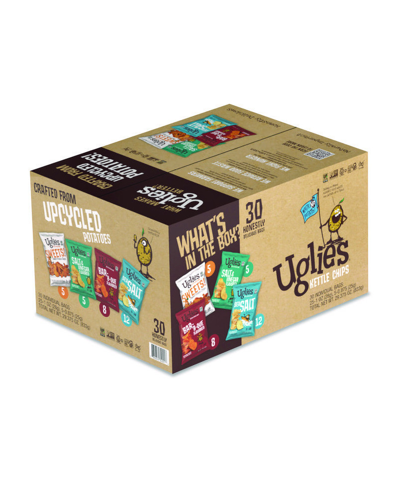 The Uglies kettle chips help farmers and reduce food waste by buying potatoes that would otherwise be rejected for cosmetic reasons (size, shape, color). The brand turns them into delicious, small-batch kettle chips and then donates 10% of the profits to help fight childhood hunger. Crunchy and delicious, the Uglies kettle-cooked potato chips deliver that satisfying crunch and salty taste you love. And, you're saving potatoes when you choose Uglies.