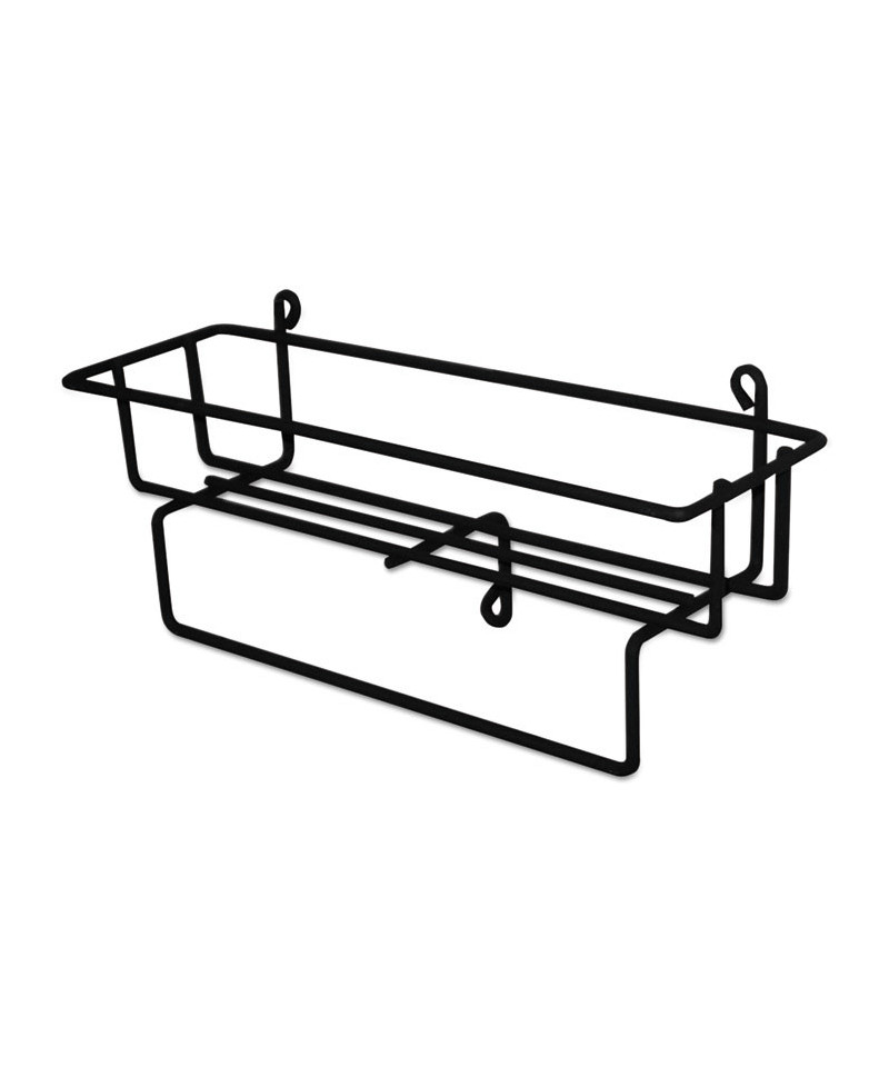 Sturdy, wall-mountable metal basket is ideal for placement in janitorial closets for easy, one-handed RTD cleaning-solution dispensing. Ideal for janitorial closets and team rooms.