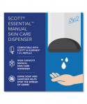 Provides reliable balance of efficiency, performance and value. When you need a no-fuss skincare or commercial soap dispenser, this dispenser is a smart choice. The manually activated dispenser has a 1000 mL (1 liter) capacity and can be refilled with trusted soap, hand sanitizer and lotions from Kleenex Brand and Scott Brand. You'll enjoy reliable dispensing and easy loading the compatible commercial cassettes click right in.