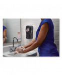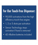 Features the smallest footprint and cubic area in its class with subtle curves that complement the aesthetics of any washroom. Enjoy thick, rich foam from our state-of-the-art pump. High-efficiency engine provides an industry leading 90,000+ precise activations. Clear side panel strip for fill-level visibility without opening. 4D Duracell alkaline batteries included. 1, 2 or 3 shots per activation. Smart-Sensor technology discontinues activation if hand is removed. Clean Tip™ Technology cleans the pump tip after each use to minimize drip risk.