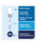 The Tork Foam Skincare Dispenser with Intuition™ Sensor in Elevation Design allows you to make a good impression on your guests and can be used with a wide range of skincare products in sealed bottles. Its touch free dispensing ensures good hand hygiene for all users. Elevation dispensers have a functional and modern design that makes a lasting impression on your guests. Modern, functional and seamless - these are the features that define Elevation's elegant design. The high-gloss plastic housing always leaves an excellent impression on visitors to your washroom. Hygienic due to sensor for contact-free discharge. Its closed system ensures maximum hygiene. The single-use pump minimizes cross-contamination risk. Low maintenance, and lockable. It has an LED refill indicator and ready-made adhesive strips for optional mounting without drilling. Winner of the iF Product Design Award and the Red Dot Award 2014.