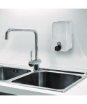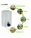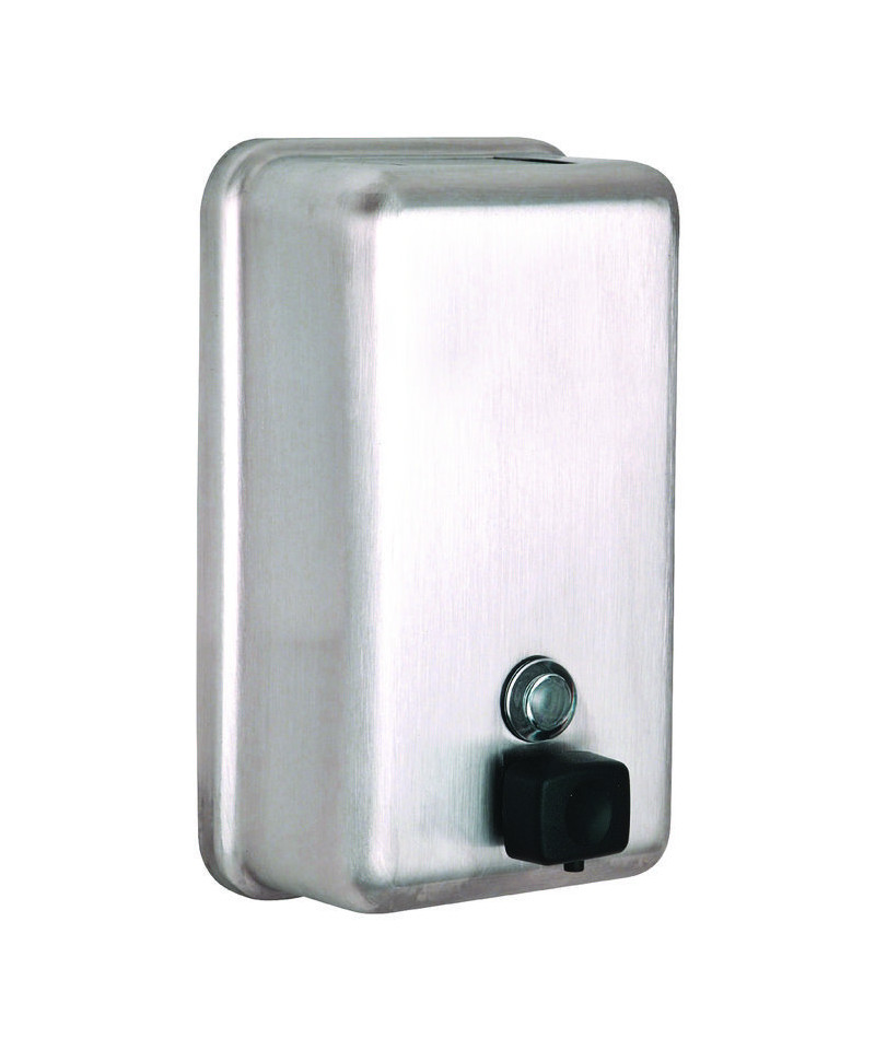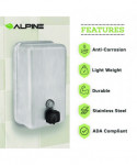 The Alpine Vertical Manual Surface-Mounted Stainless Steel Liquid Soap Dispenser combines durability and functionality. Expertly crafted stainless steel construction, this soap dispenser is built to provide long-term durability and use for many years to come. The material is both corrosion- and vandal-resistant, allowing it to stand up against harsh chemicals and multiple users without it rusting or eroding away. Works with most commercially marketed, all-purpose hand soaps, making it ideal for high traffic areas such as restrooms, break rooms, kitchens and lunchrooms. A push button with a valve makes it quick and simple to dispense of the soap, while the clear window on the front allows you to easily monitor the soap level so you can refill when necessary. Allowing for one-handed operation and ease of use, this dispenser conforms to the Americans with Disabilities Act (ADA) Standards.