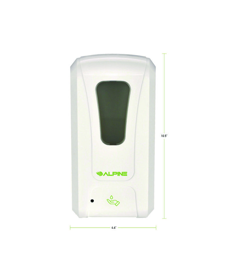 Working with most foam hand sanitizers or foam soap, this Alpine Industries Wall Mount Automatic Foam Hand Sanitizer and Soap Dispenser is ideal for use in offices, schools, warehouses, food service facilities, manufacturing, hospitals and much more. It's also ADA compliant in force and one-handed operation, making it accessible to people with disabilities. Made with durable ABS plastic construction that is resistant to chemicals, heat and impact, this product is made to provide long-lasting strength and use, ideal for high-traffic areas such as restrooms, kitchens, break rooms and lunchrooms. Top dispensing technology reduces risk of leaking valves. Automatic, hands free operation for improved hand hygiene. Quiet, powerful battery-operated dispenser uses four C batteries (not included) for longer life. High-capacity dispenser helps reduce maintenance. Equipped with a site window so you can easily monitor the soap level refill when needed. Dispenser is equipped with lock and key.