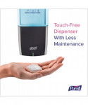 PURELL ES10 Automatic Hand Soap Dispenser requires less maintenance thanks to a fresh battery built into every refill, so you never have to change or buy batteries! Transparent refills make it easy to check product levels without opening the dispenser. Each refill has 30% less plastic and 38% lower greenhouse gas emissions for less waste. Refill bottle, collar and AA battery are easy to pull apart and recycle. Its slim profile fits in tight spaces, and it quietly dispenses highly effective, rich foam hand soap, delivering more ways to impress.