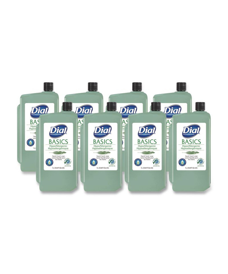 Dial® Professional Basics Hypoallergenic Liquid Hand Soap is a mild soap that is gentle on skin. Its rich, creamy lather rinses clean and leaves hands feeling soft and smooth. This dermatologist-tested and hypoallergenic formula nourishes and helps soothe dry skin while washing away bacteria when used as directed. This product meets Green Seal's globally recognized environmental leadership standard and is also approved as cruelty-free under the Leaping Bunny Program. Perfect for any commercial setting.