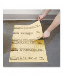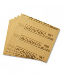 The Rubbermaid Commercial Mini Over the Spill Absorbent Pads Tablet contains 25 absorbent pads that each have a triangular "Caution" symbol as well as the words "Wet Floor" in both English and Spanish. These water and oil absorbent pads are a great way to alert customers of spills, which could cause slips or falls. The tablet backing, constructed of corrugated plastic, mounts on flat surfaces or affixes to wet floor signs for convenient storage. Each spill pad is made from melt-blown polypropylene for added strength and absorbs up to 12 ounces of fluid for efficient cleaning.