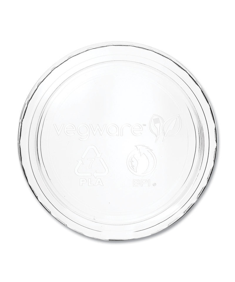 A flat round lid to fit Vegware™'s 2 oz to 4 oz portion pots. Offers a great seal and easy stacking. Stop that sauce from escaping. Made from PLA, a renewable material made from plants. Clear for visibility. Award-winning quality by Vegware™, made from plants. Commercially compostable where accepted.