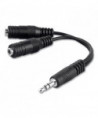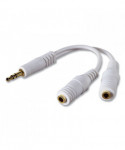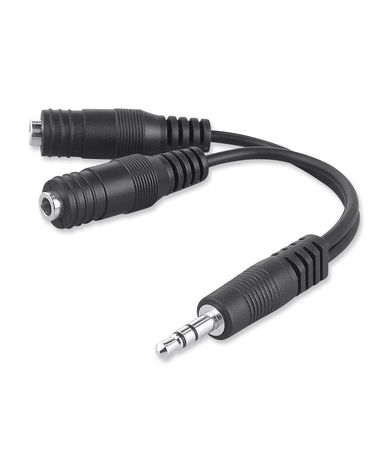 The Belkin® Speaker and Headphone Splitter adapter M/2F audio cable enables connecting two speakers or headsets to one jack. It provides a simple way to connect two mini-stereo speakers to an iPod®, iPad® or other handheld device for stereo sound. It also allows you and another person the ability to have multi-listening, video, or gaming pleasure by merely connecting two headsets to a single device. The 3.5 mm splitter comes with a 1/8" male mini plug and two 1/8" female ends for natural listening pleasure with a partner. The Belkin® Speaker and Headphone Splitter doesn't just play left and right channel audio, but sends a stereo signal to both points of the splitter. You can take the double earphone adapter with you on an airplane and watch the same movie on the same device with your travel partner. Multiple applications using the Belkin® Speaker and Headphone Splitter offer limitless capabilities with functions like using the splitter with your car's AUX port to enjoy music.
