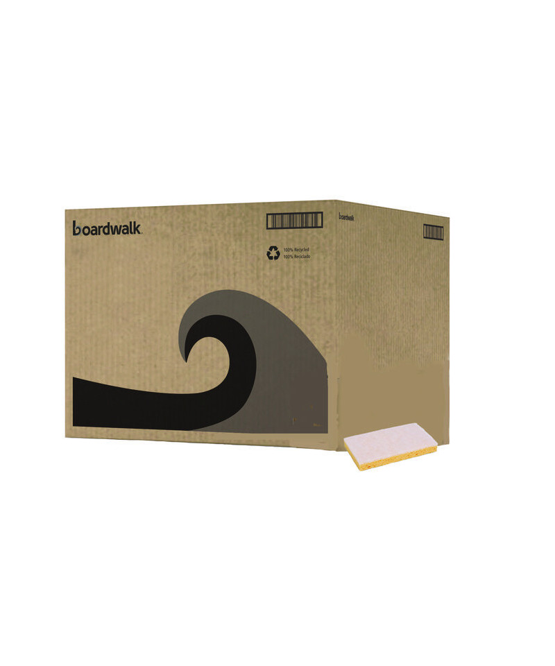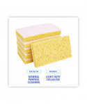 Dual-action cleaning sponge with absorbent cellulose sponge on one side and medium-duty nylon scrub pad on the other. Dual-purpose general cleaning tool for kitchens, bathrooms, offices, and industrial settings. Makes cleaning faster and easier by carrying cleaning solutions and water to the work surface. Use the softer cellulose side to soak up spills and wipe clean. The rougher, textured side works well on tougher stains and surfaces. Convenient size for scrubbing tough stains or soaking up spills. Individually wrapped.