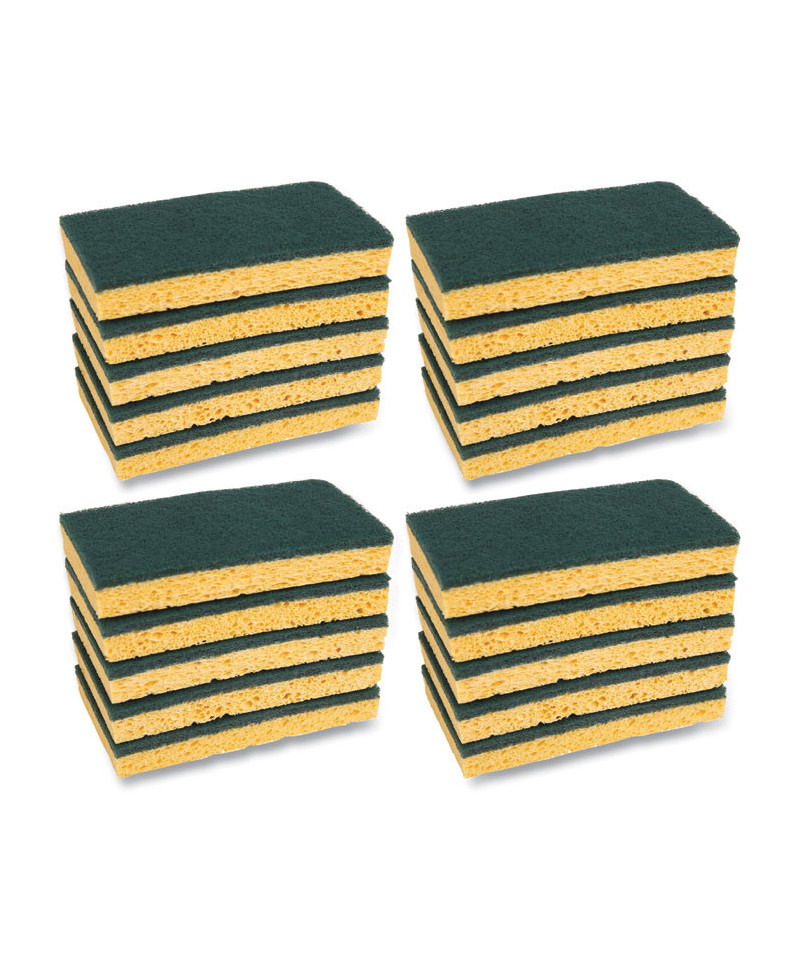Dual-action cleaning sponge with absorbent cellulose sponge on one side and medium-duty nylon scrub pad on the other. Dual-purpose general cleaning tool for kitchens, bathrooms, offices, and industrial settings. Makes cleaning faster and easier by carrying cleaning solutions and water to the work surface. Use the softer cellulose side to soak up spills and wipe clean. The rougher, textured side works well on tougher stains and surfaces. Convenient size for scrubbing tough stains or soaking up spills. Individually wrapped.