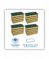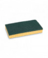 Dual-action cleaning sponge with absorbent cellulose sponge on one side and medium-duty nylon scrub pad on the other. Dual-purpose general cleaning tool for kitchens, bathrooms, offices, and industrial settings. Makes cleaning faster and easier by carrying cleaning solutions and water to the work surface.