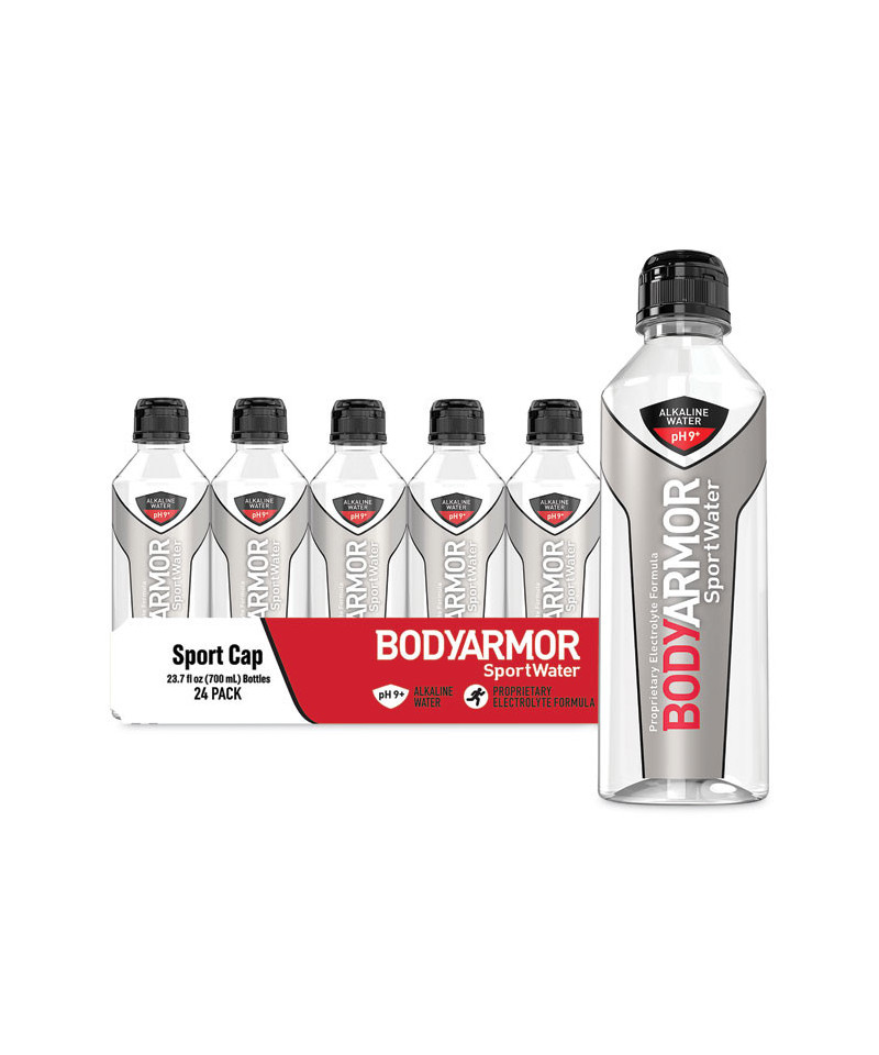 BodyArmor SportWater is a premium sport water created for those with an active lifestyle with a performance pH 9+ and electrolytes for sport. Packaged in bottles with sport caps. Contains reverse osmosis water, potassium bicarbonate, calcium chloride and magnesium chloride.