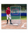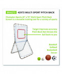 Great for schools, parks and backyards, our Champion Sports Multi-Sport Pitch Back Screen is a versatile training tool for a variety of sports. The practice screen rotates to different angles to help athletes practice kicking, batting catching and throwing, all with the same piece of equipment. The multi-sport pitch back screen is made with a tough steel frame and durable nylon netting that can endure even the most intense hits with ease, and it has a square target in the middle to help improve accuracy.