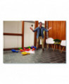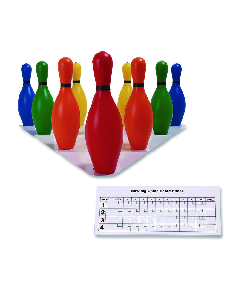 This set is fun for everyone to bowl safely indoors or outdoors. This set includes ten plastic bowling pins, a setup sheet, and a score pad. Fill with sand for added weight.