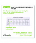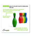 The Champion Sports Bowling Pin Set is fun for everyone to bowl safely indoors or outdoors. Don’t worry about the wind or slightly uneven surfaces ruining your game ideas, each pin has a 0.5” capped hole to add sand for additional weight and stability so pins stay in place, and you can bowl over and over. This set includes ten plastic bowling pins, a setup sheet, and a score pad.