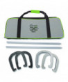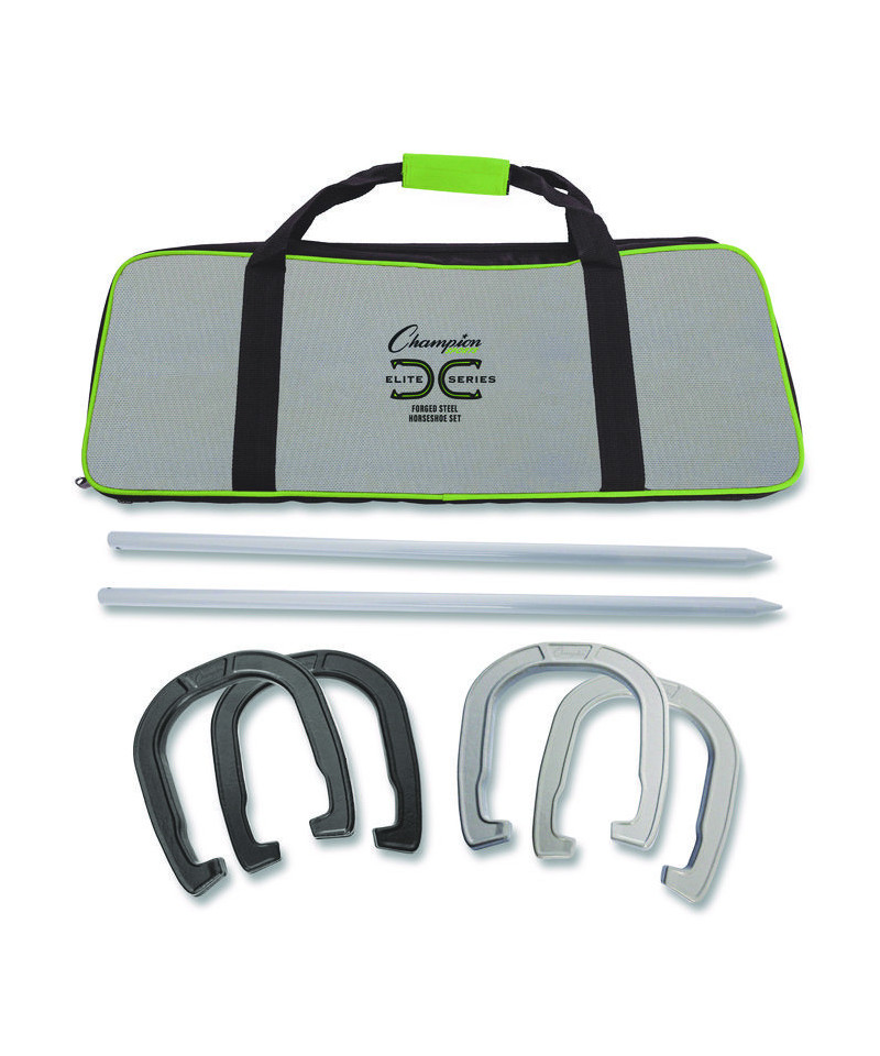Elevate your horseshoe game with the Champion Sports Elite Series Forged Steed Horseshoe Set. Experience the thrill of professional-grade horseshoe pitching with the Champion Sports Elite Series Forged Steed Horseshoe Set. Engineered for the most serious tournament and league players, this set is designed to deliver exceptional performance and durability. Crafted from high-quality forged steel, these horseshoes are meticulously balanced and weighted for optimal accuracy and control. The set includes two black and two gray horseshoes, along with a beautifully embroidered storage case for convenient transportation. With official rules and instructions included, the Champion Sports Elite Series Forged Steed Horseshoe Set is the perfect choice for players seeking to enhance their skills and dominate the competition. Experience the excitement and challenge of this classic game and elevate your horseshoe pitching to new heights.