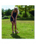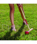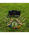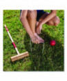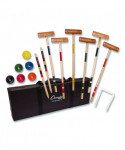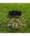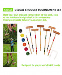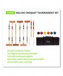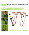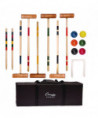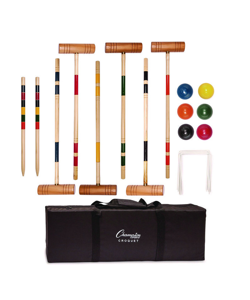 Hold your own croquet competition at the park, club or out on the schoolyard with this convenient Champion Sports Deluxe Tournament Croquet Set. The set features durable, brightly colored balls that will be easy to spot on any lawn and heavy-duty steel wickets will stand up to game after game. The hardwood mallets have a comfortable shape and feature a new and improved handle connector to keep them in peak condition. Designed for players of all skill levels, this croquet set includes a complete set of rules and a durable nylon carry bag.