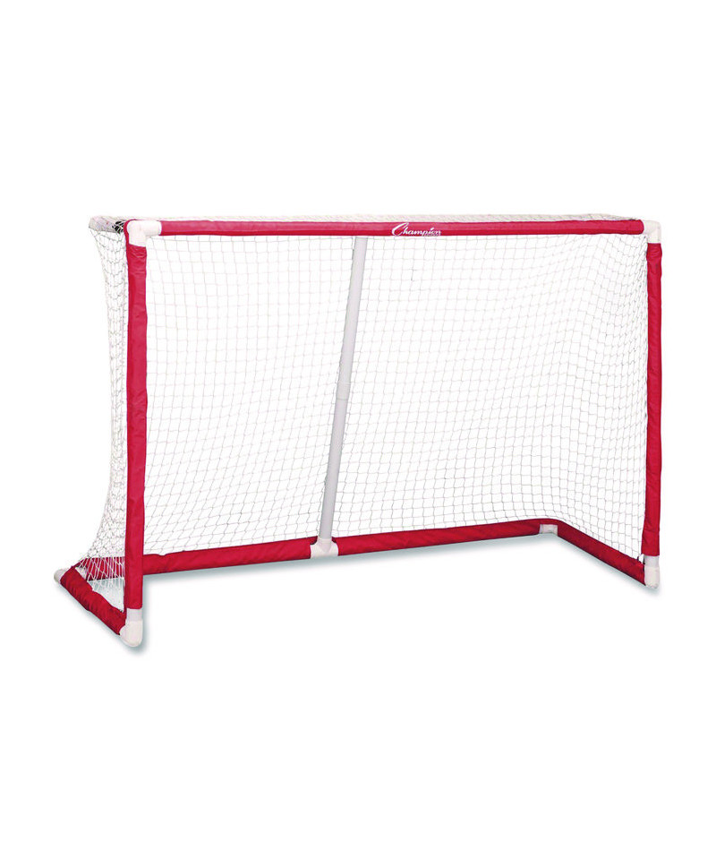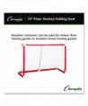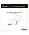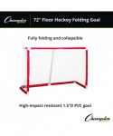 Made with 1.5" PVC material and a heavy-duty nylon sleeve, the Champion Sports 72 Inch Floor Hockey Collapsible Goal is weather-resistant, meaning it can be used for indoor floor hockey games or outdoor street hockey games. The custom fittings and fully foldable design allow the top and bottom of the hockey net to collapse into a convenient size for storage and transportation, making it simple to move from the playground or the court to storage.
