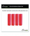 Visibly mark the lines and end zones of your field with this Champion Sports Line and End Zone Pylon Set. The four bright orange football pylons keep the corners of the field easy to spot from a distance, and they have a weighted bottom to hold them securely in place. These line and end zone markers are made with a tough vinyl-nylon blend, with a soft poly foam core to help prevent injuries.