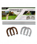 Liven up your next outdoor gathering and play an authentic game of horseshoes in the backyard or at the campsite with this set. This complete set includes standard weighted powder-coated steel horseshoes for longevity and an authentic feel, and two solid steel stakes that are easy to drive into the ground for quick setup for traditional-style play. Carry the game in the handy reusable nylon carry bag.