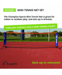 Want to enjoy a game of tennis anytime, anywhere? The Champion Sports Mini Tennis Net is the perfect solution. This portable net is ideal for indoor or outdoor play and sets up in minutes. Made of lightweight steel, it's easy to transport and store, thanks to its convenient carrying case. Whether you're practicing your serve in the backyard or having a friendly match with friends, the Champion Sports Mini Tennis Net is a great way to stay active and have fun.