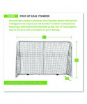 Great for gym classes or practices, the Champion Sports Fold Up Goal is designed to be easy to use and durable in outdoor environments. Featuring a steel-tube frame that folds up flat, this 72" soccer goal is easy to set up as well as transport or put in storage. The 3" mesh net offers durability in outdoor conditions, while the anchor stakes allow the soccer net to be mounted to the ground with ease.