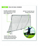 Great for gym classes or practices, this fold up goal is designed to be easy to use and durable in outdoor environments. Featuring a steel-tube frame that folds up flat, this 72" soccer goal is easy to set up as well as transport or put in storage. The 3" mesh net offers durability in outdoor conditions, while the anchor stakes allow the soccer net to be mounted to the ground with ease.