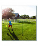 Similar to tetherball, tether tennis uses two tennis paddles to wrap a ball around a pole. This set has everything you need to start a game! Featuring a metal pole with swivel arm and spiral coil, the easy clip-on hook attaches the tennis ball to the pole with a 64” rope. The set includes two tennis paddles and one extra tennis ball.