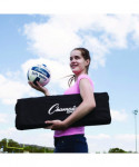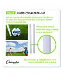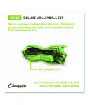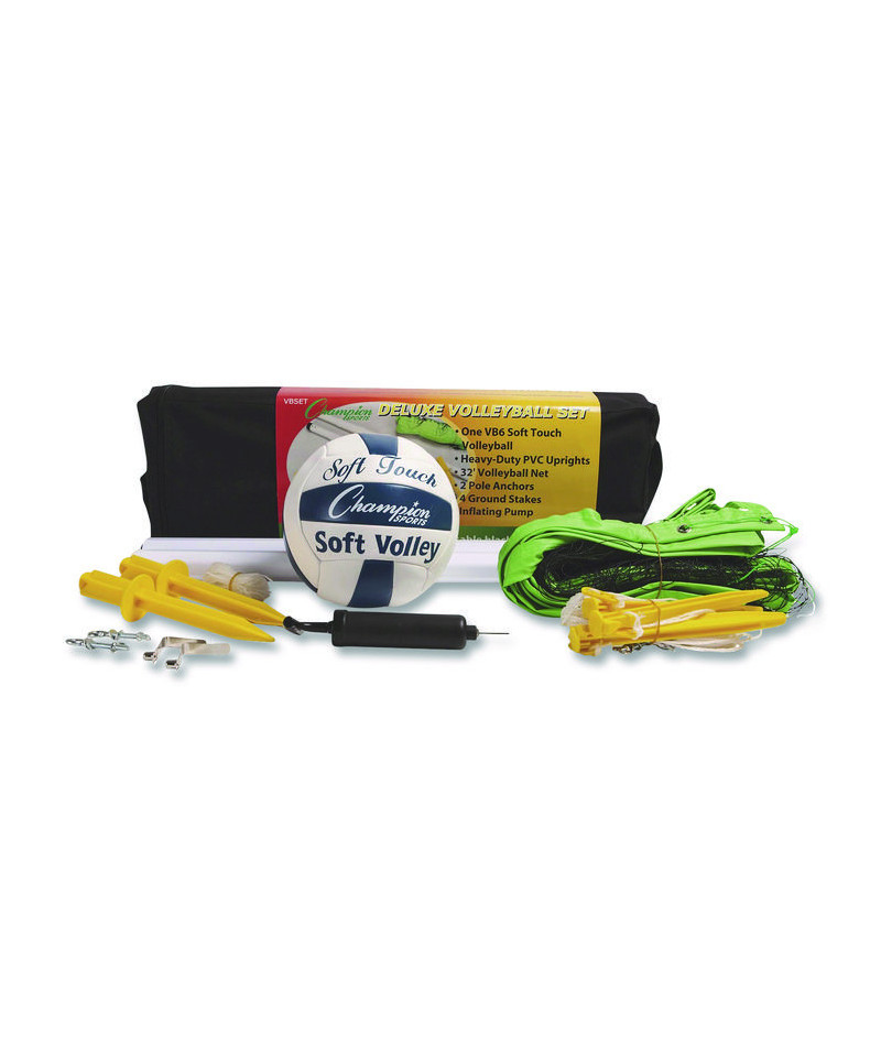 Set up a game of volleyball at the park, the beach, or your own backyard with the Champion Sports Deluxe Volleyball Set. This set includes a 32-ft volleyball net with sturdy plastic uprights, two pole anchors, four ground stakes, as well as an official-size, soft-touch volleyball and an inflating pump. The set comes packaged in a convenient black carrying case.