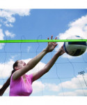 Set up a game of volleyball at the park, the beach, or your own backyard with this set. This set includes a 32-ft volleyball net with sturdy plastic uprights, two pole anchors, four ground stakes, as well as an official-size, soft-touch volleyball and an inflating pump. The set comes packaged in a convenient black carrying case.