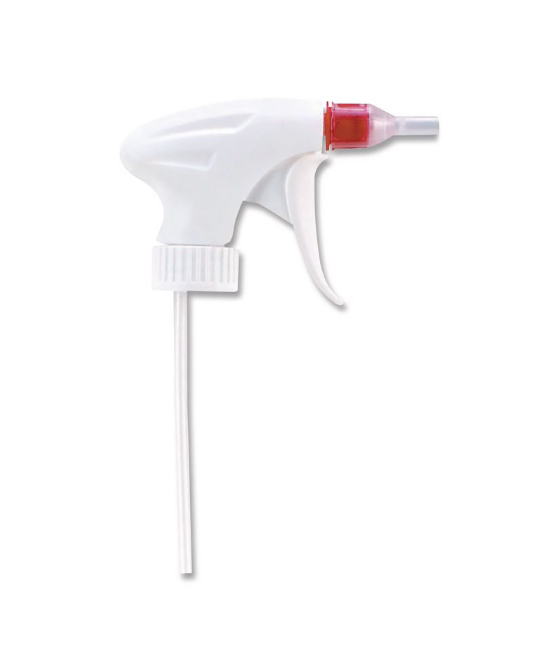 Quick-prime, high-volume design simplifies cleaning tasks. Patented anti-back-off system prevents sprayer from working itself loose from cleaning-solution bottles. Adjustable nozzle may be set to an extra-wide mist or a tight-focused stream. Special gasket and pump mechanism ensure leak-free performance. Ergonomic grip with wide trigger accommodates both large and slender hands.