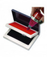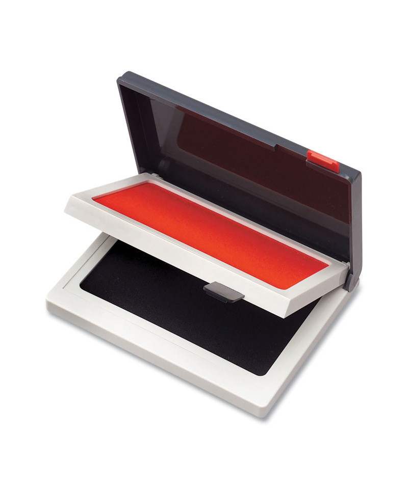 Double your choices with two pads in one impact-resistant case. Unique design allows you to switch colors with ease—simply flip the pads as you would the pages of a book. Superior felt surface delivers better stamp coverage while ensuring long-lasting performance. Compatible with a variety of hand-stamp sizes. Re-inkable.