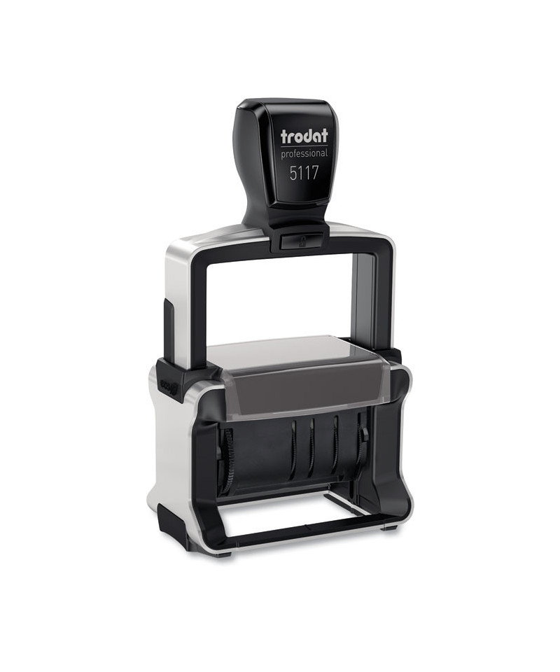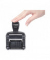 Designed to keep up with a very active office, this heavy-duty dater includes 12 popular phrases to cover a variety of business needs. Steel frame construction for extra durability. Four bands produce 10 years of dates for years of service. Date band covers ensure your fingers remain clean. Includes stamp pad that delivers up to 10,000 impressions; pad is easily replaced to extend stamp life. Impression size: 2 1/4" x 3/8".