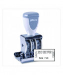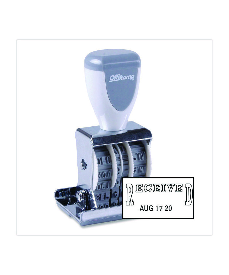 Organize everything more easily, and include a specific message with each date on your incoming and outgoing documents. Easy-to-rotate month, day and year wheels make it easy to get everything just right each and every day. Round, ergonomic plastic handle allows you to get a comfortable grip. Durable steel frame.