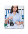 Combine a word and date to make a real impression. Four-band date: months, days and five-year band. Self-inking dater has a plastic frame. Includes snap in/out, cartridge-style two-color (blue and red) ink pad. Type size 1 1/2. Impression size: 1 3/4w x 1l.