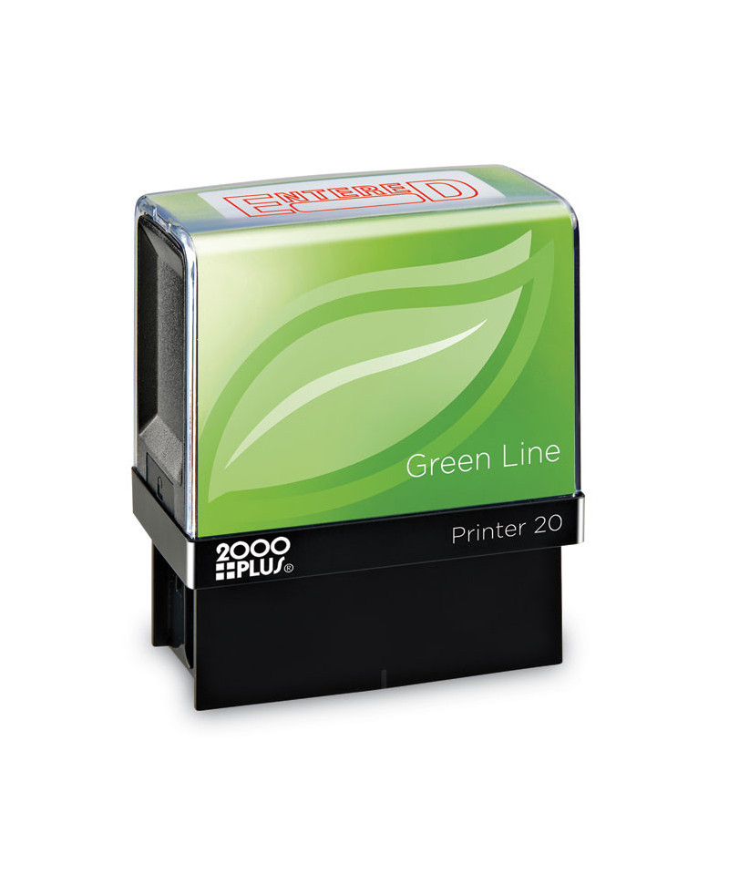 The COSCO 2000PLUS® Green Line Self-Inking Message Stamp is a reliable choice for fast, consistent document marking. Built with a long-lasting, built-in ink pad, this stamp is designed to deliver up to 5,000 sharp impressions before re-inking is needed. Preloaded with water-based ink, it ensures smooth, even coverage with every use. In addition to performance, the Green Line stamp is constructed with recycled content, offering a sustainably conscious solution for offices and businesses. Practical and durable, this stamp delivers efficiency while supporting sustainability efforts.