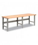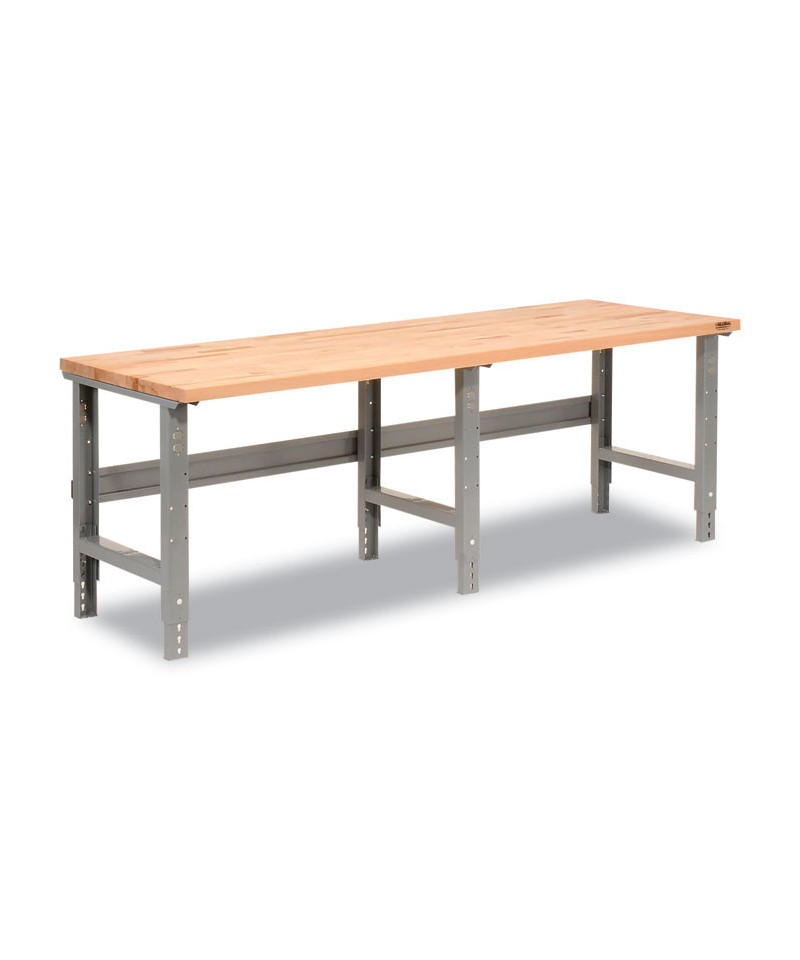 Standard Duty Butcher Block Top Adjustable Height Workbench, 2,000 lbs, 96 x 36 x 30.88 to 36.88, Maple/Gray